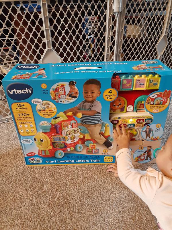 VTech 4-in-1 learning letters train has multiple functions to play and learn. It can be used as a ride along toy or as a learning letters and sounds. This toy will keep your little entertained and help develop their motor skills. Great fun toy!